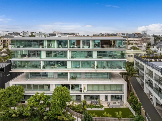 Architectural masterpiece by Monk Mackenzie that pushed the boundaries of architecture, structural, and services design. This six-level residential development features three upper floors cantilevered above the ground floor, preserving views of Judges Bay and the Waitematā. 30mm natural stone travertine installed across Silca System on aluminium frame on pedestal on membrane – providing a top-tier finish. The perfect combination of luxury, quality, and precision. We are proud to have been involved in such an exceptional project.